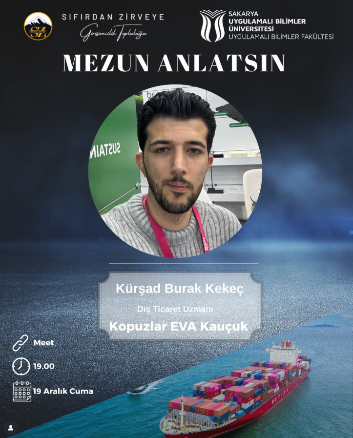 📌 Our guest, who works as a Foreign Trade Specialist at Kopuzlar EVA Rubber, will share insights on foreign trade processes, his career journey after graduation, sectoral experiences, and advice for students.