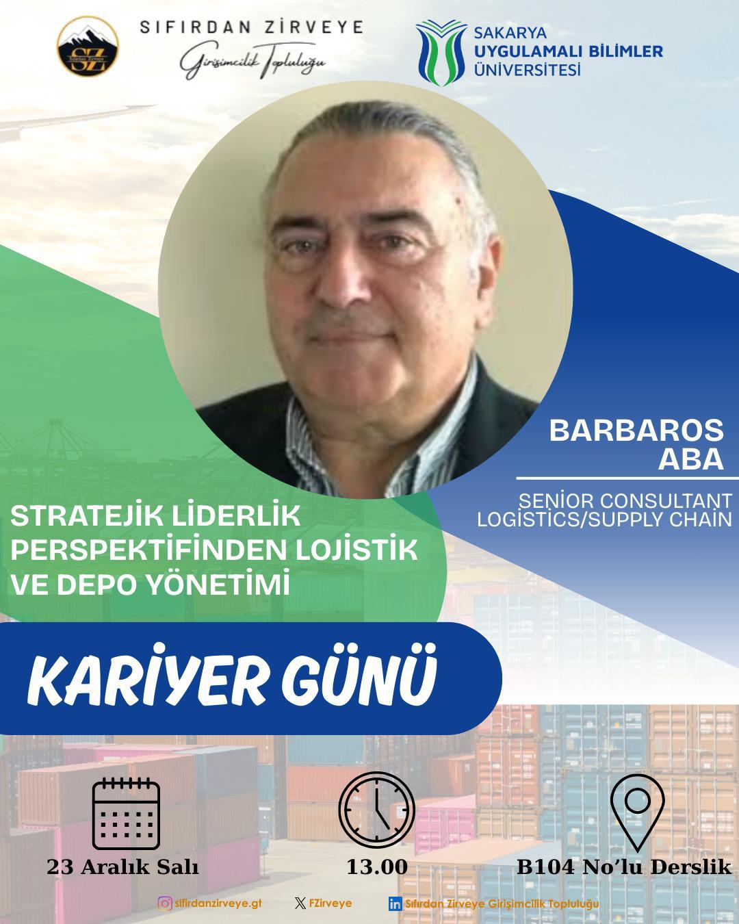 In the second session of our Career Day event organized by the Zero to Summit Entrepreneurship Community, one of our faculty communities, we are pleased to host one of the most distinguished figures in the logistics sector, Mr. Barbaros Aba.