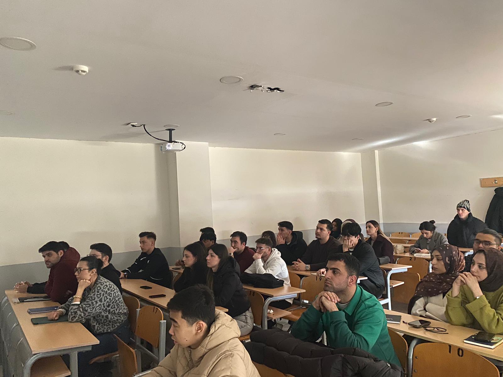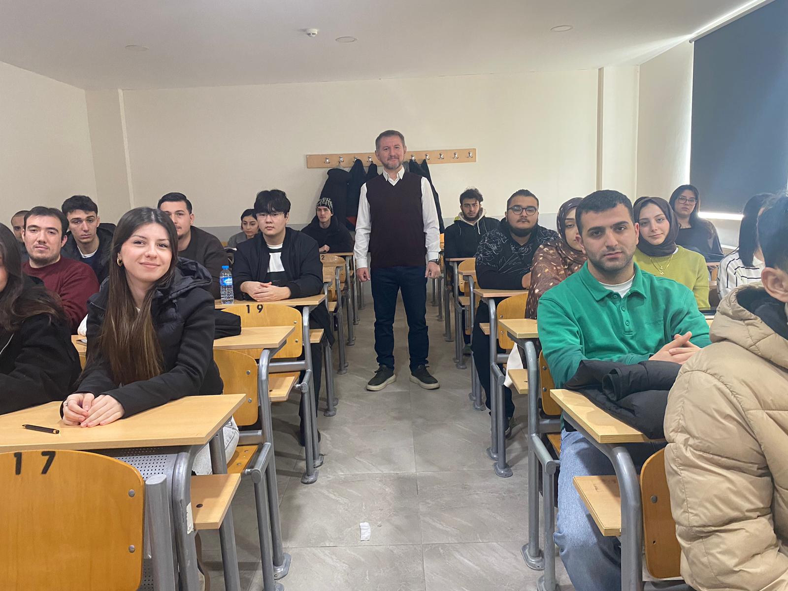 Fakültemiz tarafından düzenlenen İlk Ders Etkinliği kapsamında gerçekleştirilen Uluslararası Ticarette Lojistik Düşünme Biçimi: Bir Ürün Dünyayı Nasıl Gezer? başlıklı etkinlik, 24 Şubat 2026 Salı günü UBF B102 dersliğinde yoğun katılımla gerçekleştirildi.