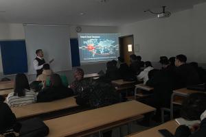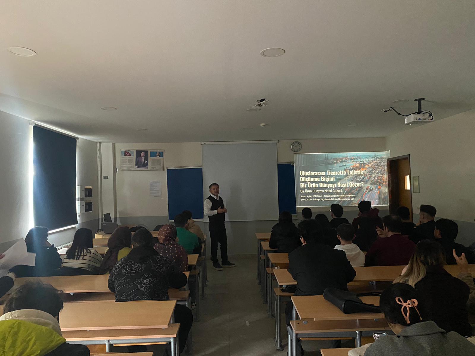 Gerçek sektör deneyimlerinden örnekler paylaşan Vodinalı, küresel pazarlarda rekabet edebilmenin yalnızca üretimle değil, doğru planlanmış ve etkin yönetilen lojistik süreçlerle mümkün olduğunu ifade etti. Öğrenciler, etkinlik boyunca yönelttikleri sorularla sürece aktif katılım sağladı.