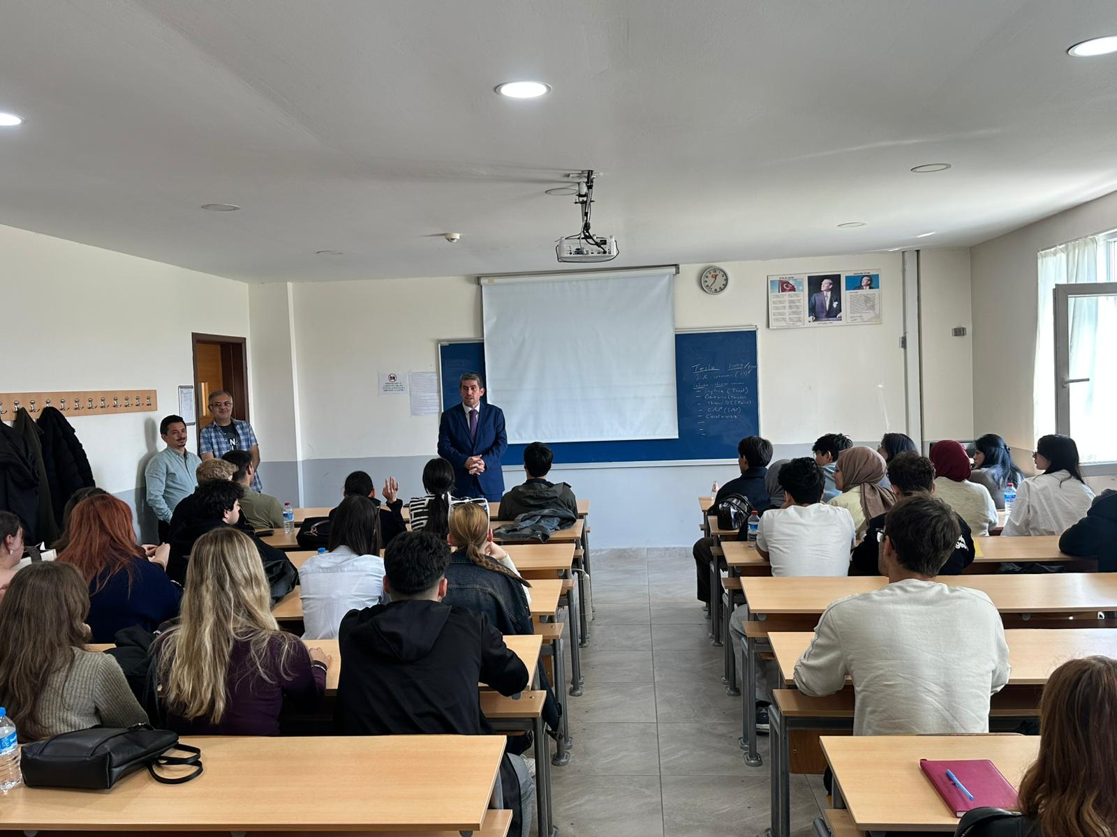 Fakültemiz Uluslararası Ticaret ve Finansman Bölümü’nde yeni eğitim-öğretim yılı kapsamında 1.sınıf öğrencilerimize yönelik oryantasyon programı düzenlendi. Programa Fakülte Dekanı Prof. Dr. Sinan Esen, Bölüm Başkanı Doç. Dr. Metin Saygılı, bölüm öğretim üyesi Doç. Dr. Zafer Adıgüzel ve bölüm araştırma görevlisi katıldı. Öğrencilerin akademik kadroyu tanıma, bölümün sunduğu imkânlar ve eğitim süreci hakkında bilgi edinme fırsatı bulduğu program, samimi bir atmosferde gerçekleştirildi.