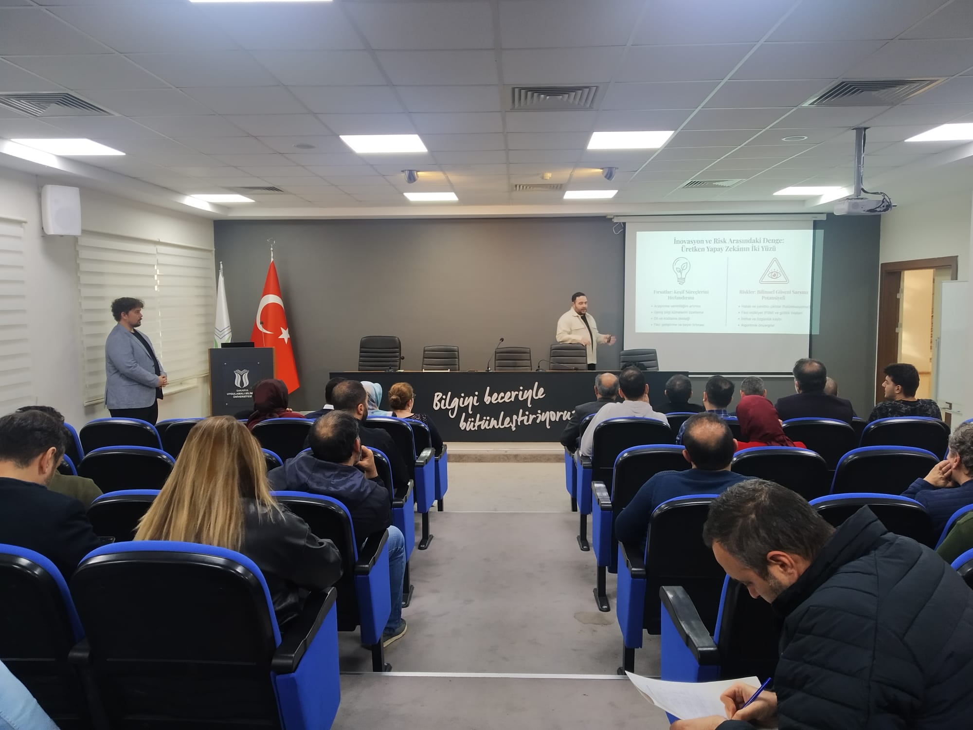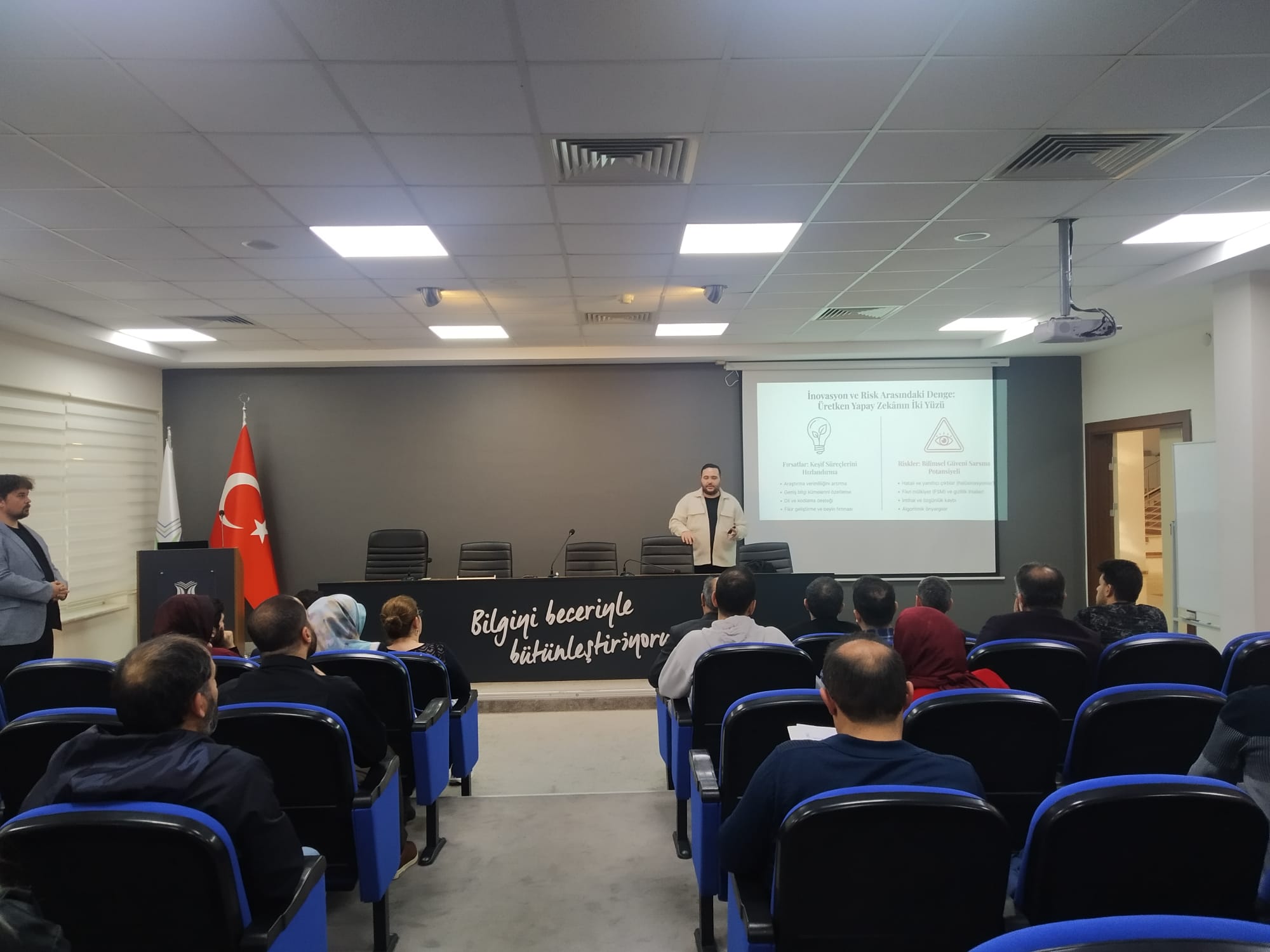 Fakültemiz Öğretim Üyesi Dr. Öğr. Üyesi Onur CANPOLAT, YAZEM VE TTO işbirliği ile düzenlenen "TÜBİTAK, AB ve KOSGEB Projelerinde Üretken Yapay Zeka Kullanımı" başlıklı seminerde, katılımcılara proje süreçlerinde yapay zekanın etik ve sorumlu kullanımı hakkında bilgilendirmelerde bulundu.