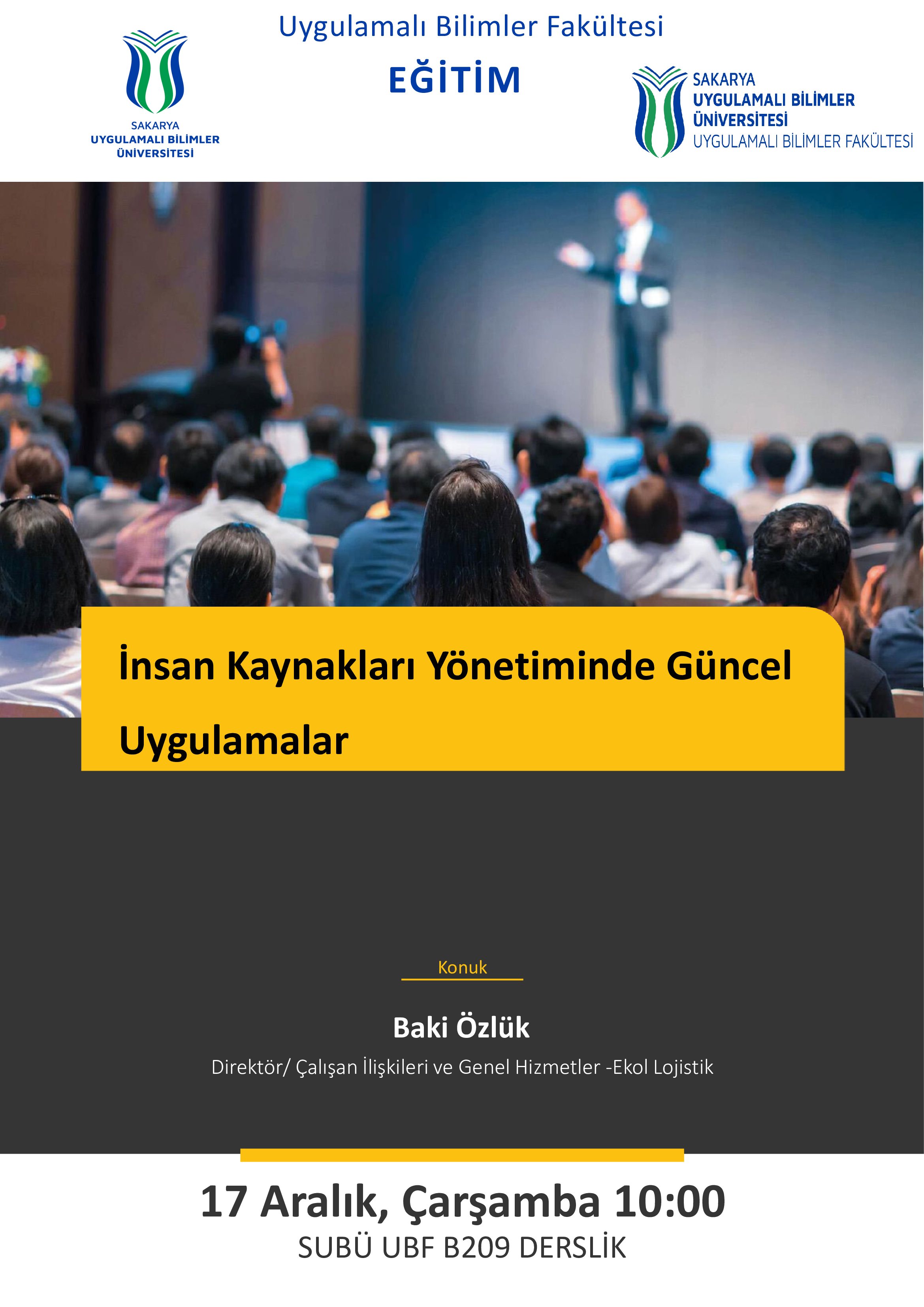 Etkinliğin konuğu, Ekol Lojistik Direktör / Çalışan İlişkileri ve Genel Hizmetler yöneticisi Baki Özlük olacaktır.
