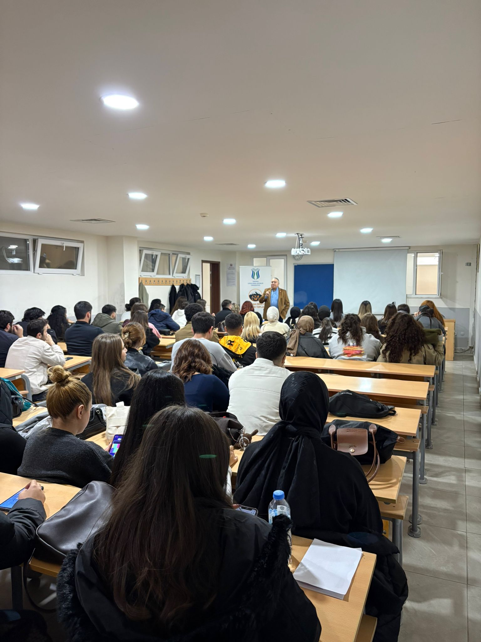 “Stratejik Liderlik Perspektifinden Lojistik ve Depo Yönetimi” başlığıyla düzenlenen etkinlikte; lojistik sektöründeki güncel gelişmeler, depo yönetiminde stratejik yaklaşımlar ve kariyer planlamasına yönelik önemli paylaşımlar yapıldı. Sayın Aba, sektörel tecrübelerini öğrencilerle paylaşarak katılımcılara yol gösterici bilgiler sundu.